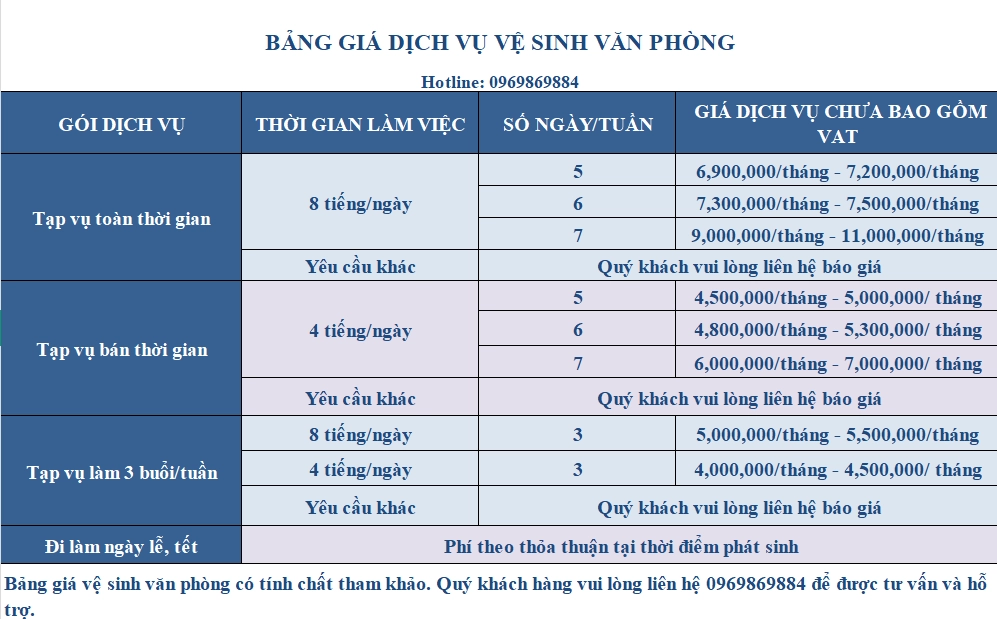 3. Bảng giá dịch vụ vệ sinh văn phòng của LAMSACH5S