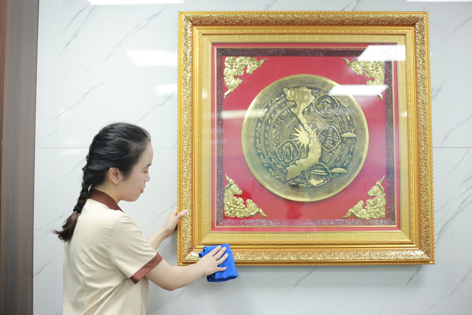 - Lau chùi bàn ghế, quầy lễ tân, sàn nhà và vật dụng trang trí.